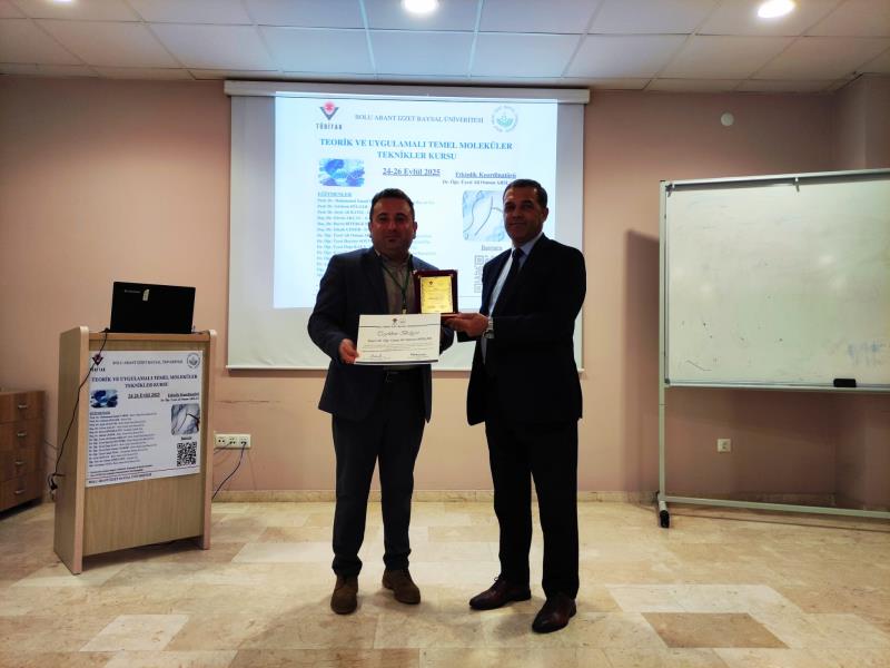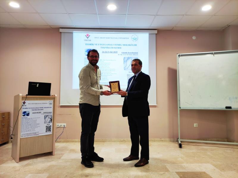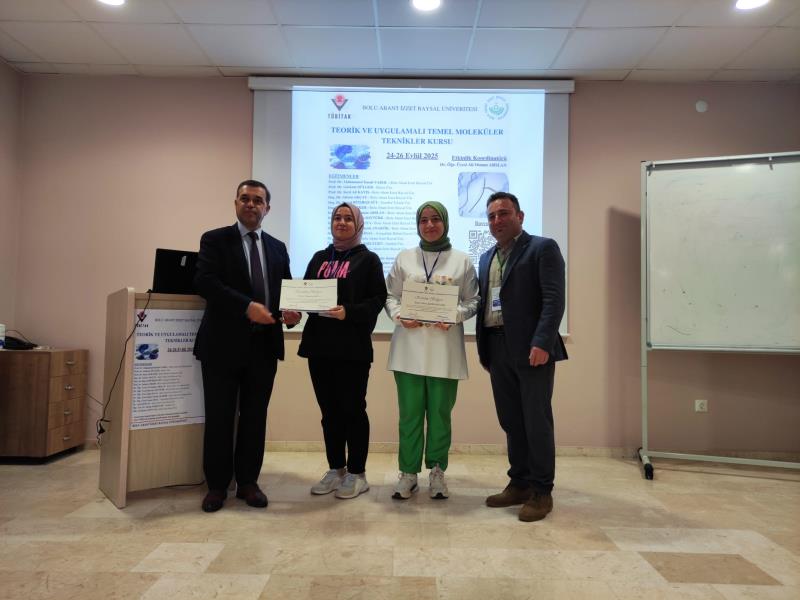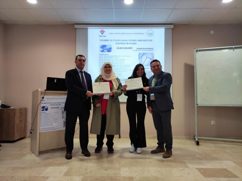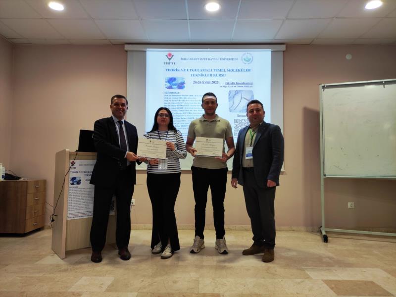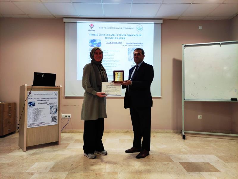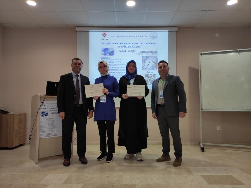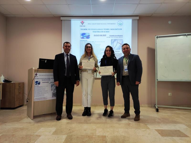 TÜBİTAK 2237-A Bilimsel Eğitim Etkinliklerini Destekleme Programı tarafından desteklenen ve 24-26 Eylül 2025 tarihleri arasında Bolu Abant İzzet Baysal Üniversitesi Bilimsel Endüstriyel ve Teknolojik Uygulama ve Araştırma Merkezi (BETUM)'de yüz yüze düzenlenen “Teorik ve Uygulamalı Temel Moleküler Teknikler Kursu” kursu başarıyla tamamlanmıştır.